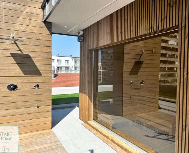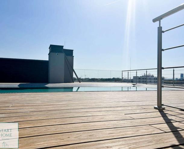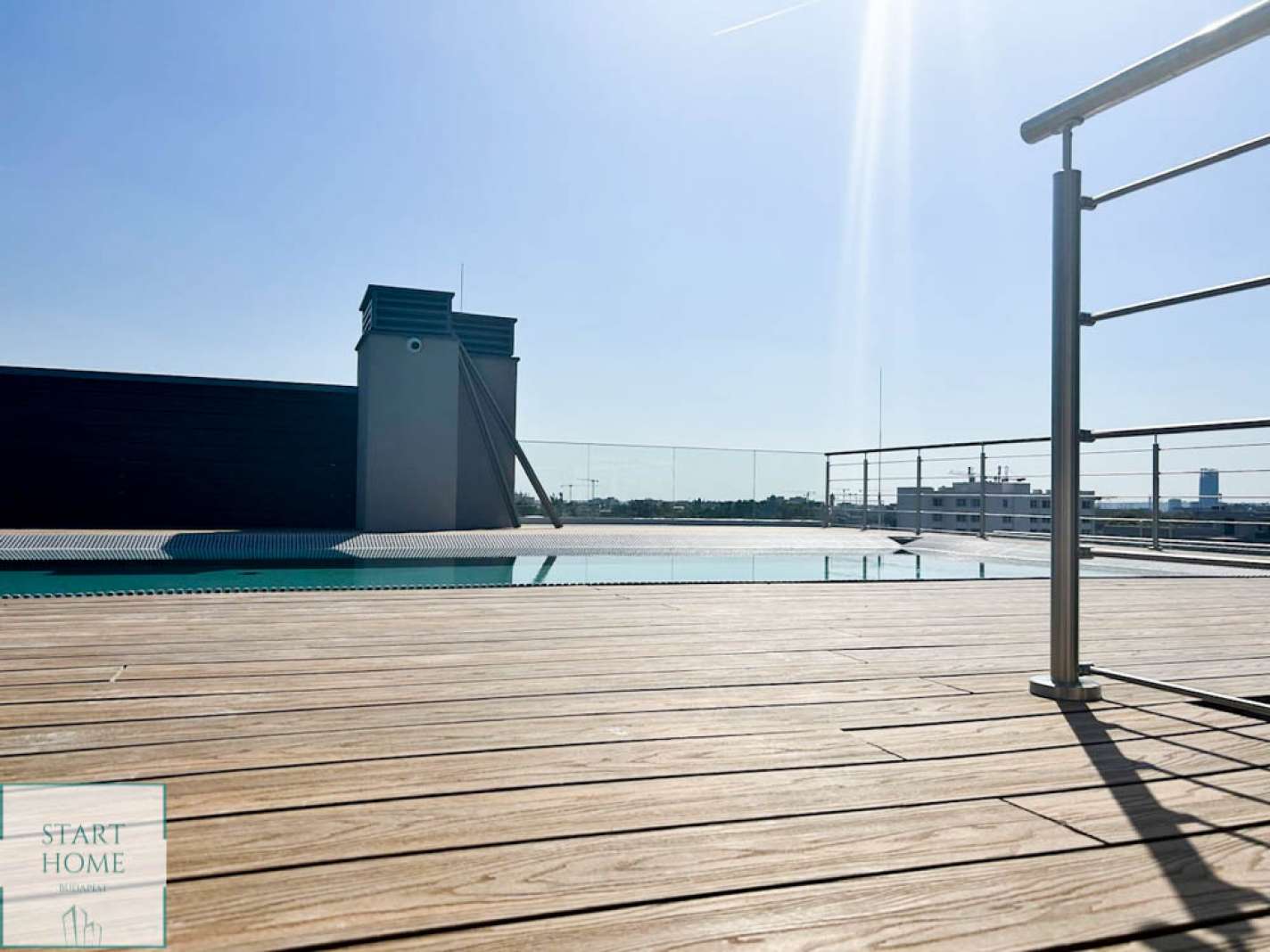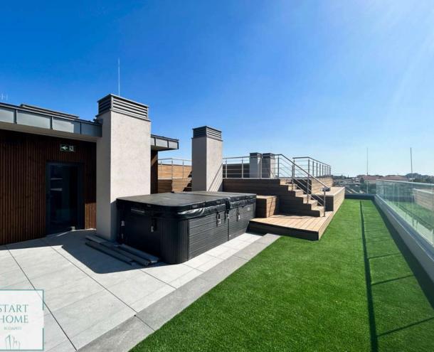A ház különlegessége a tetőn található medence, jakuzzi és szauna, napozó terasz valamint a recepciós szolgáltatás, amelyek egyedülálló kényelmet biztosítanak a lakók számára.