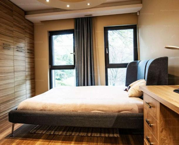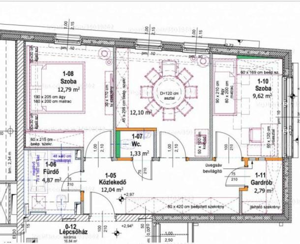 A felső szinten három hálószoba, gardrób, külön WC és egy kádas fürdőszoba kapott helyet.