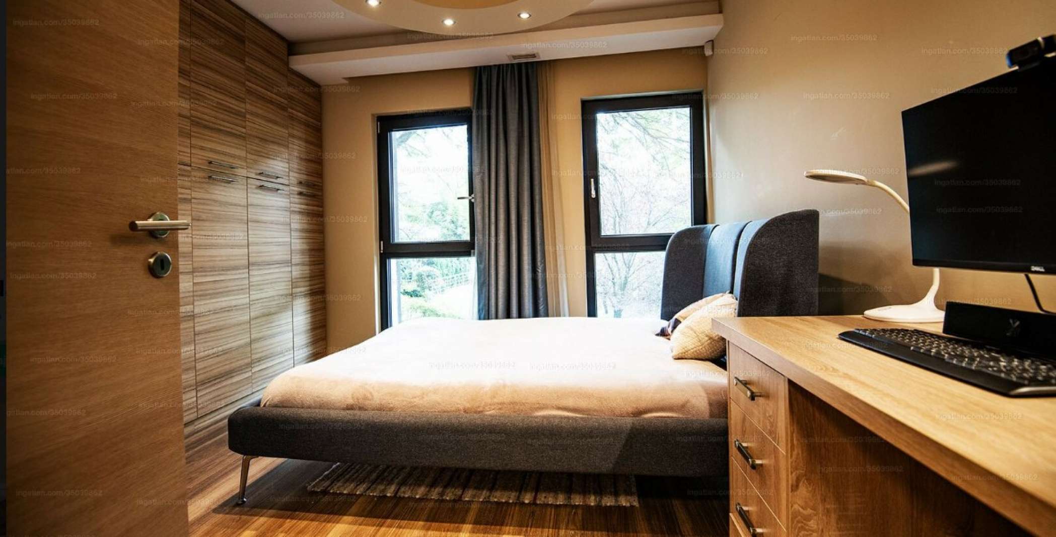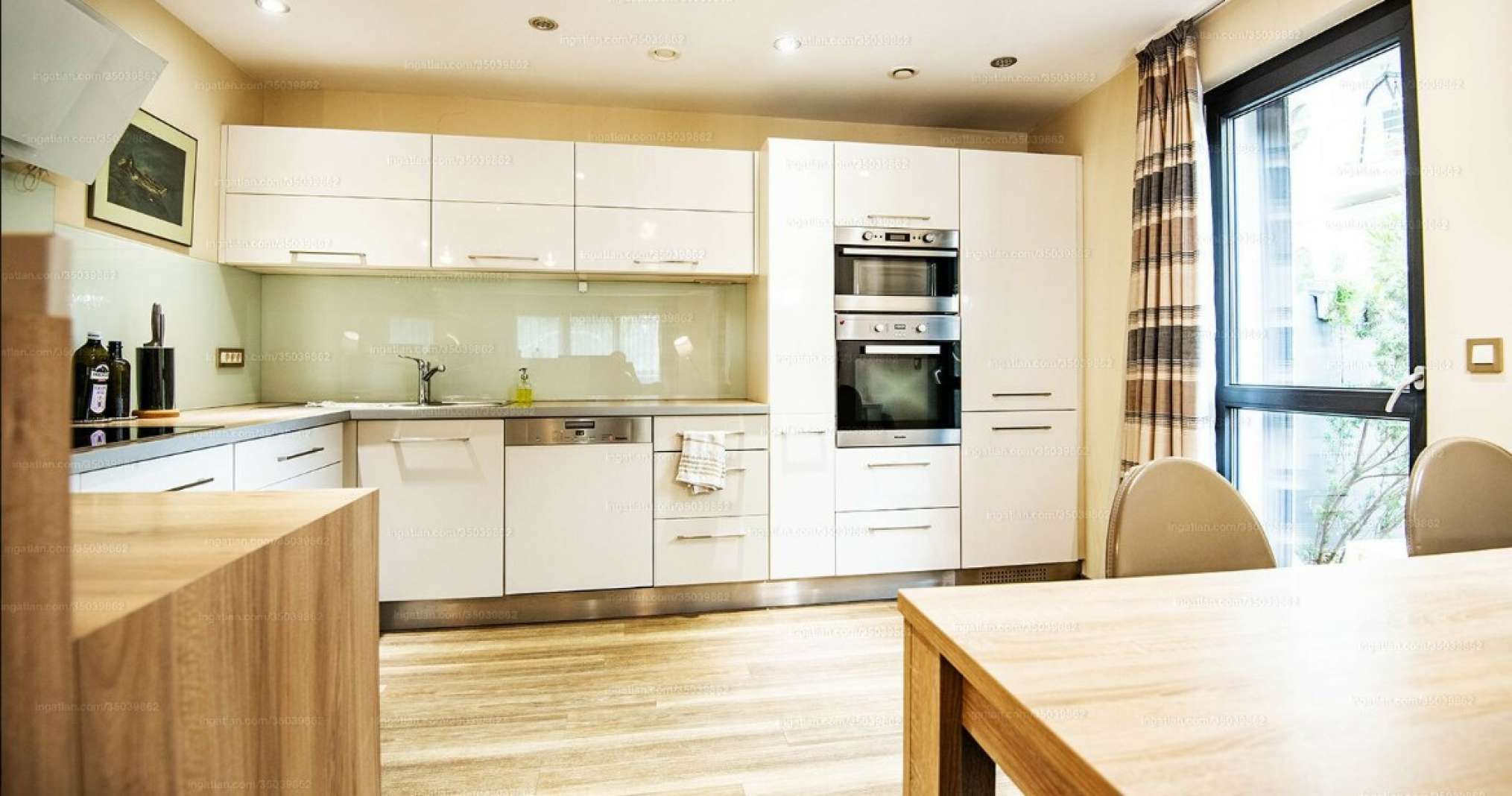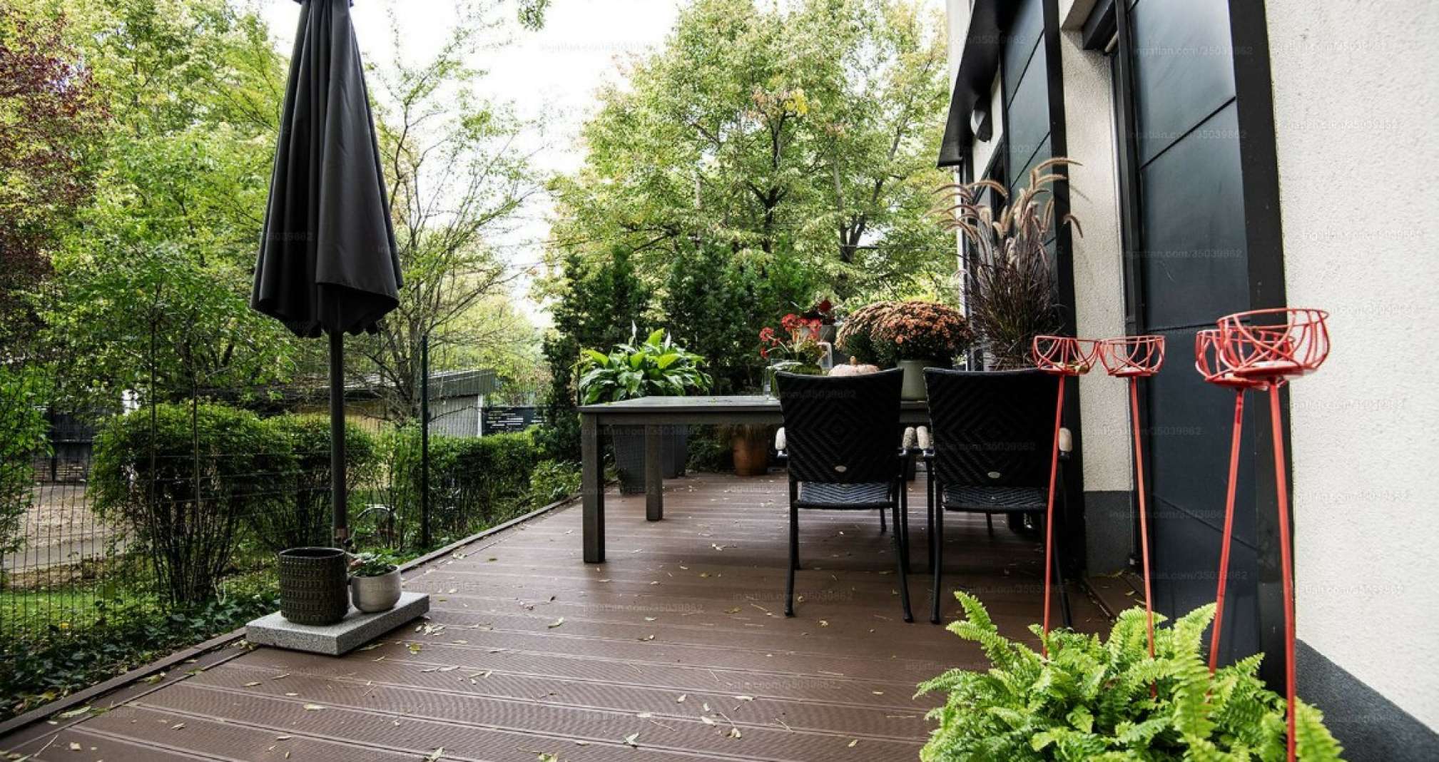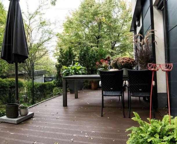 Budapest II. kerületében, a Budenz utcában, 2016-ban épült, parkosított kerttel rendelkező, öt lakásos társasházban kiadó egy 109 m²-es, belső kétszintes, 4 szobás lakás, melyet lakberendező különleges igényességgel tervezett (Szép Házak 2016/1. számában megjelent).