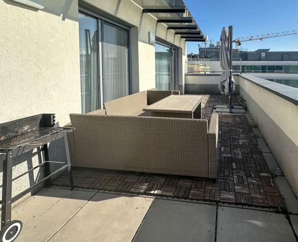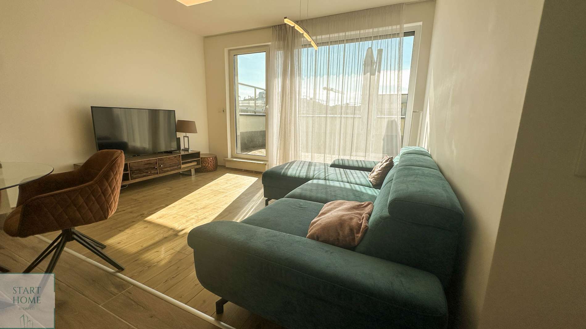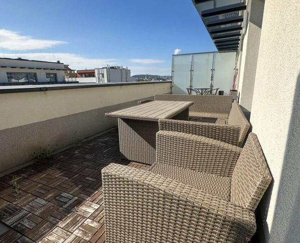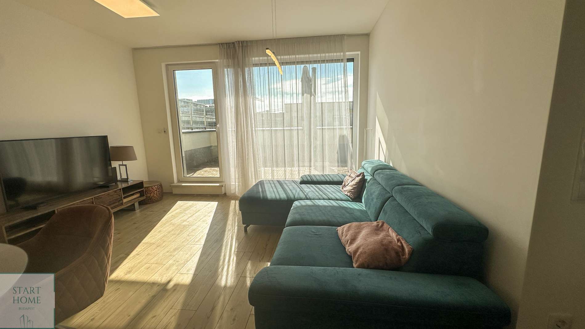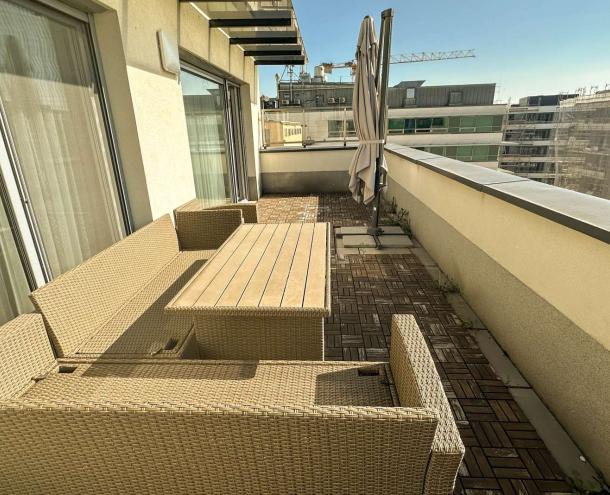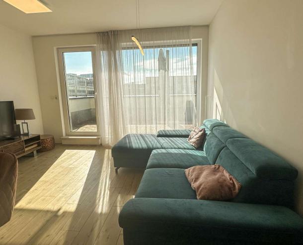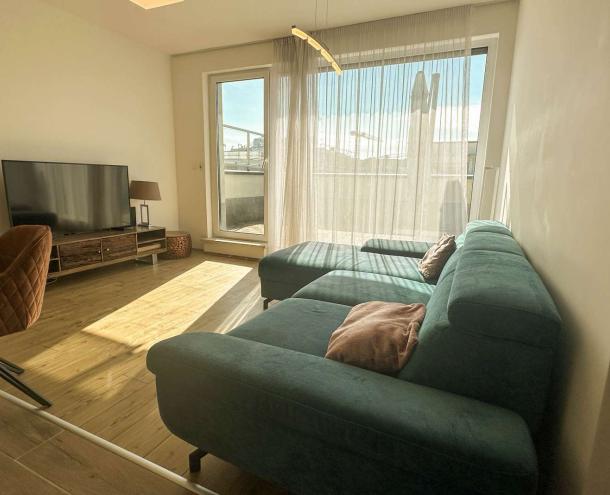 Kiadó egy modern, új építésű lakás Budapest XIII. kerületében, Újlipótvárosban, a Nyugati tér közelében. A 7. emeleten (legfelső szinten) található, 2 hálószobás, nappali + amerikai konyhás lakás különlegessége a tágas, 25 m²-es panorámás terasz.