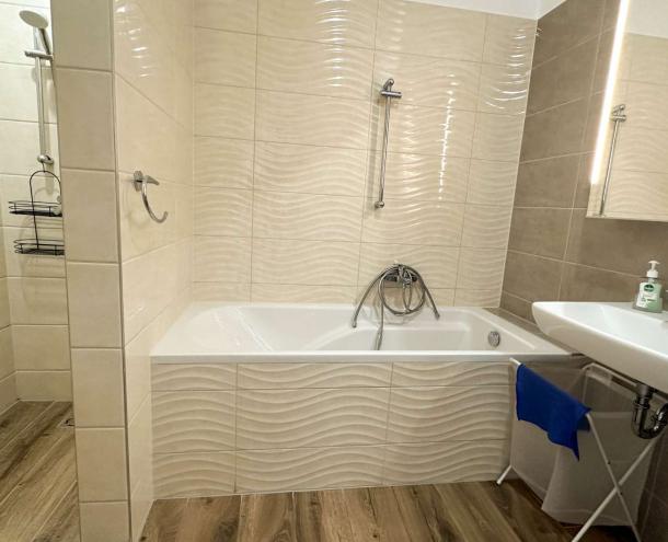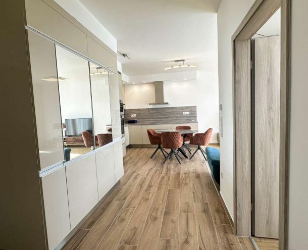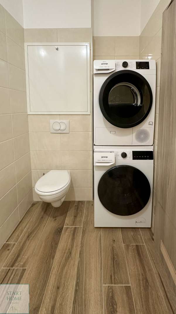 A lakás magas műszaki színvonalú: falhűtés-fűtés rendszerrel, elektromos redőnyökkel és szúnyoghálókkal felszerelt. A fürdőszobában kád és külön zuhanyzó is található. Teljesen bútorozott, új berendezéssel, mosó-szárítógéppel és gépesített konyhával várja új bérlőjét.