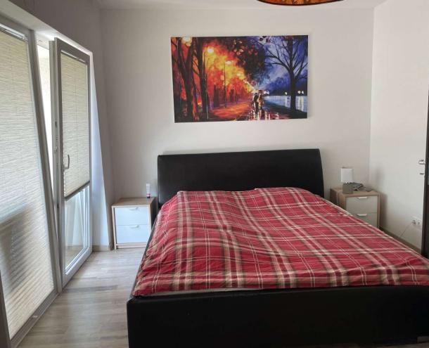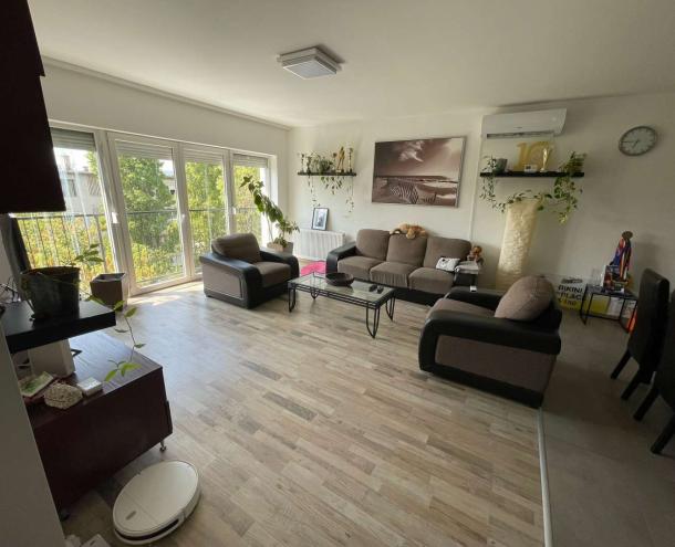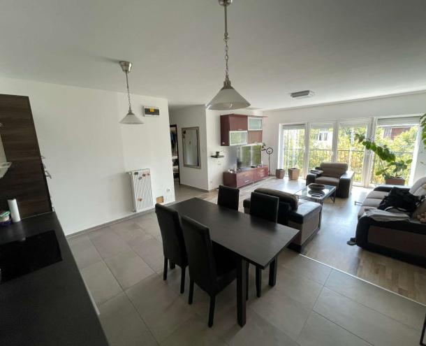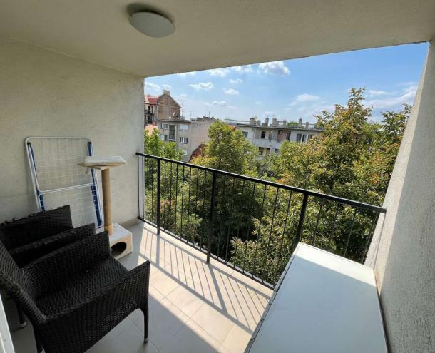 NAGYON CSENDES, 2 SZOBÁS KIS LAKÁS KIADÓ! 2015-ben épült 6 lakásos társasház legfelső, IV. emeletén (lift nincs) kiadó ez a nagyon kellemes 65 nm-es, 2 szobás, amerikai konyhás nappalival rendelkező, világos, napos lakás, képeken látható bútorokkal. A lakás nagyon csendes, az ablakok és a hálószobából megközelíthető erkély a fákkal beültetett kis térre néznek, a környező forgalmas utcák zaja egyáltalán nem hallatszik be. A lakásban a saját cirkó fűtés adja a meleget nyáron a légkondicionáló a hideget. A fürdőszobában kényelmes sarokkádat építettek be, a WC külön helyiségben van. A közös költség 10.000,-FT/hó. Lehetőség van a házban fedett vagy nyitott parkolóhely bérlésére.