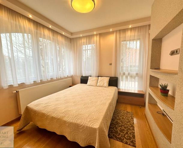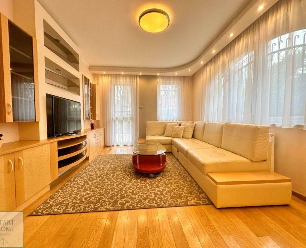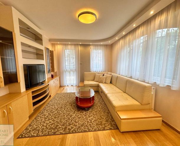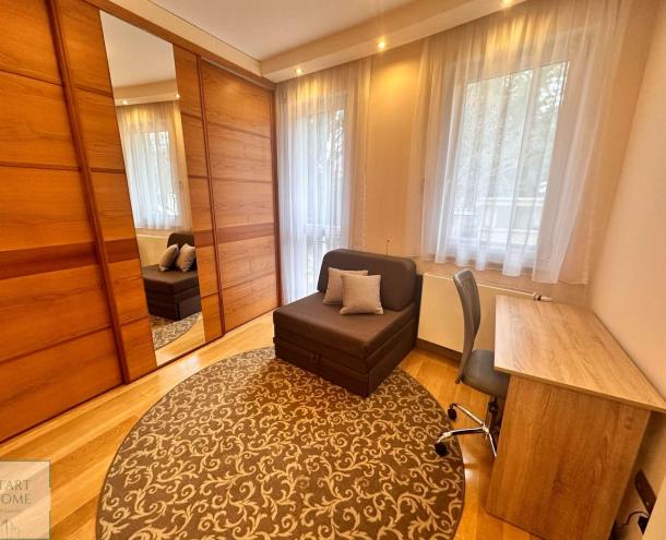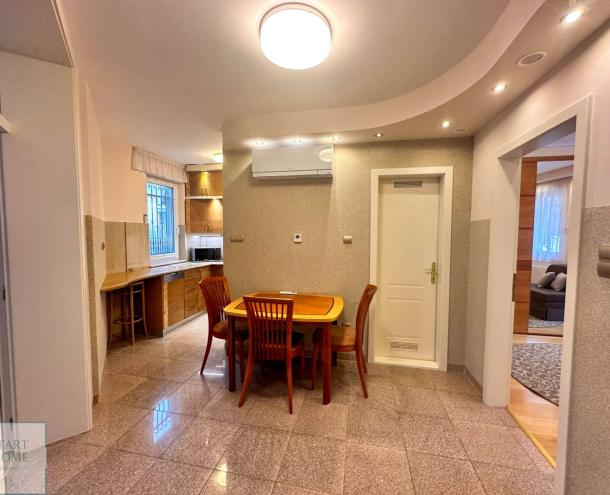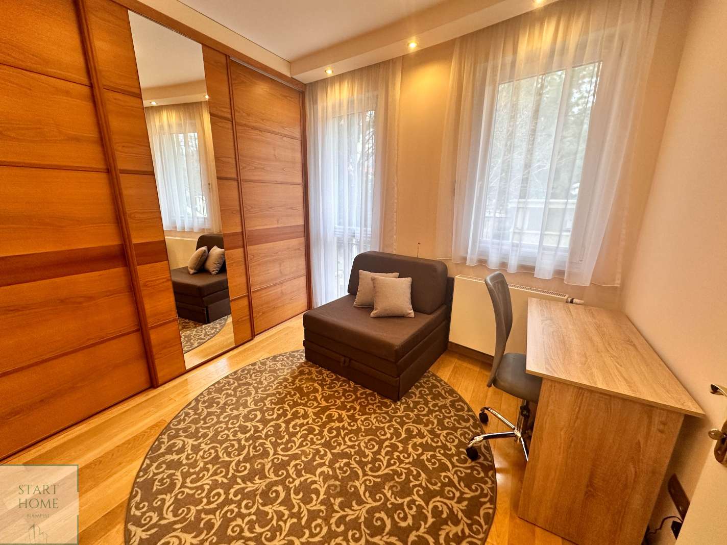 LUXUS KISLAKÁS KIADÓ! 2000-ben épült, 1440 nm-es kertben álló, 4 lakásos társasház fszt-i, 86 nm-es bútorozott, kertkapcsolatos és teraszos lakása kiadó. Amerikai konyhás nappali terasszal, 2 hálószoba, 1 fürdőszoba, 2 WC, szeparált kertrész, padlófűtés, gránit és parketta burkolatok, riasztó. A lakás modern bútorokkal berendezve bérelhető. Szeparált cirkó fűtés, mosókonyha, 1 garázs + beálló. A ház "A" energetikai besorolású. Közös ktg.: 100 Euro/hó, kertész: 100 EURO/hó (kötelező). Háziállaz nem mehet!