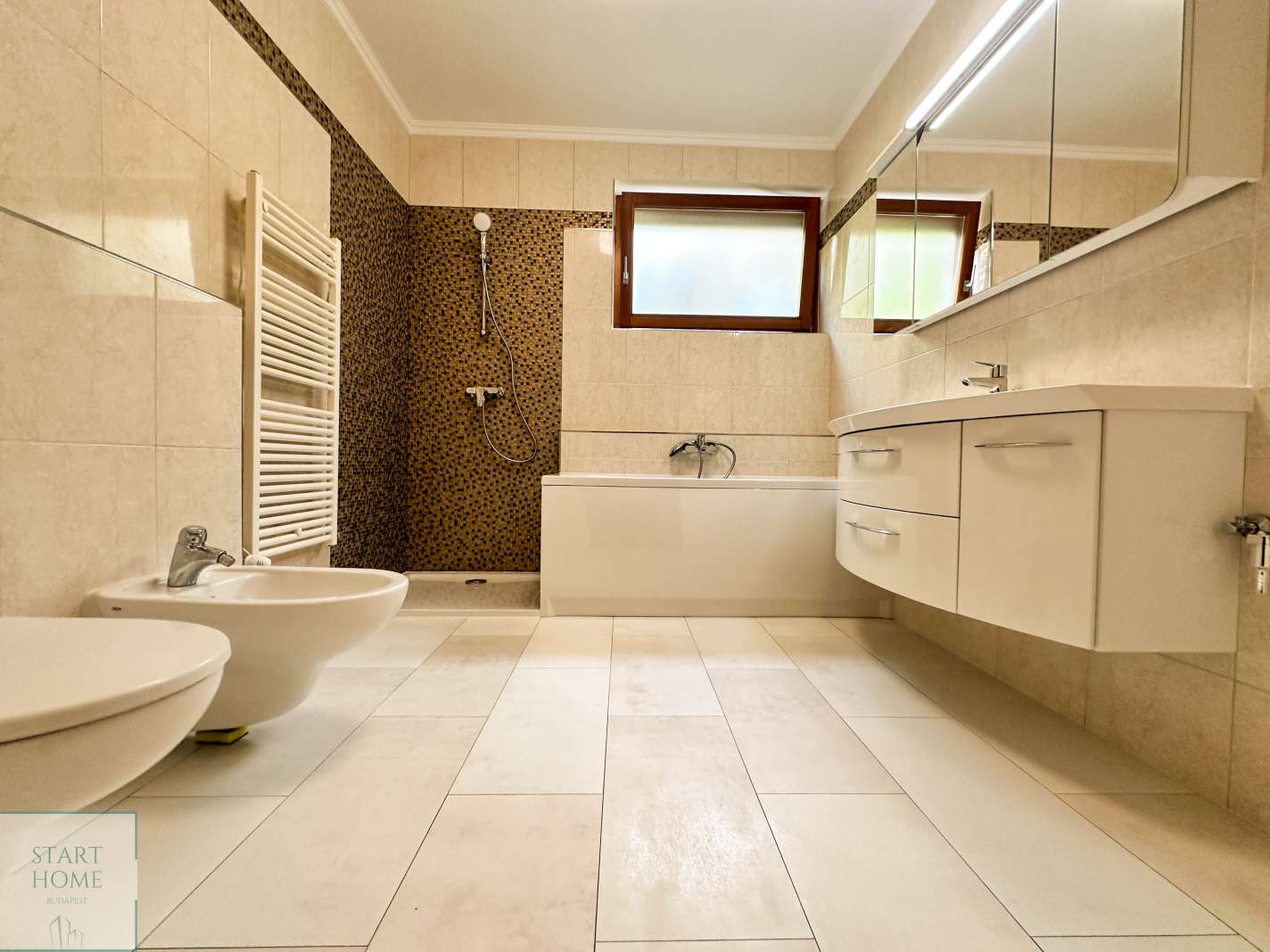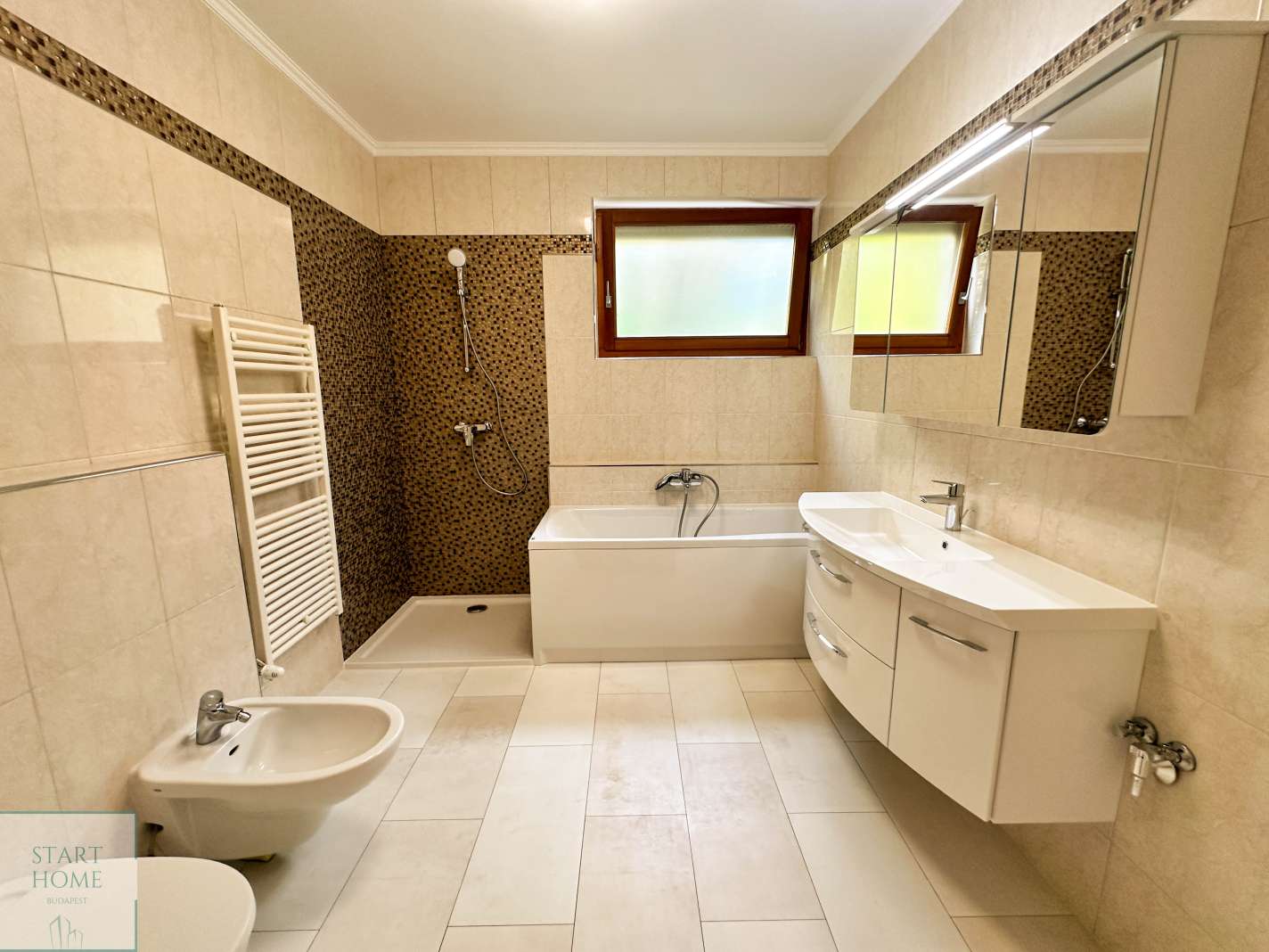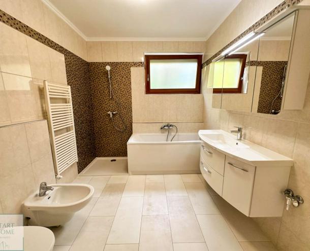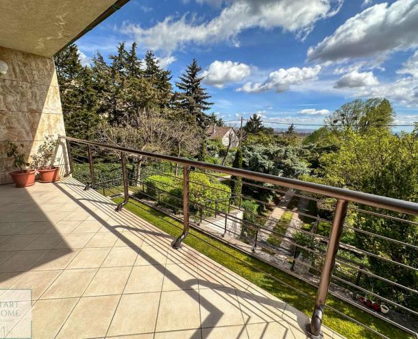 Kiadó luxus lakás a 12. kerületben, Mártonhegyen, egy modern 7 lakásos társasház első emeletén (lifttel). Ez a lenyűgöző 110 négyzetméteres otthon 3 hálószobával és 2 fürdőszobával (egyikben kád, a másikban zuhanyzó található), valamint vendég WC-vel és tágas nappalival rendelkezik, melyben amerikai konyha nyújt kellemes környezetet. Az ingatlan teljes kényelmet biztosít hosszú távra, és felszereltségéhez tartozik légkondicionáló, ADSL internet, szatellit TV, valamint elektromos rolók. Két garázs és egy gyönyörűen gondozott kert medencével és lenyűgöző panorámával áll a lakók rendelkezésére, továbbá a kert nagyjából 200 négyzetméter privát területtel büszkélkedhet. A társasházban élő gondnok a kert és az épület állandó rendben tartásáról gondoskodik. Különleges szolgáltatások is elérhetők, mint például takarítás, mosás, vasalás és gyermekfelügyelet. A lakás nagy részben bútorozott, beleértve a modern konyhabútorokat gránit pulttal és gépekkel, függönyöket, mosó-szárítógépet, hálószoba bútorokat, nappali bútorokat, szekrényeket, TV-t stb. Bővített bútorozás vagy bútorok eltávolítása az egyeztetés függvényében lehetséges. Közös költség 95.000,-Ft/hó. Víz, gáz, áram egyéni mérőóra alapján fizetendő. 2026. augusztustól elérhető.