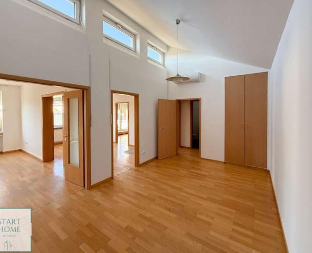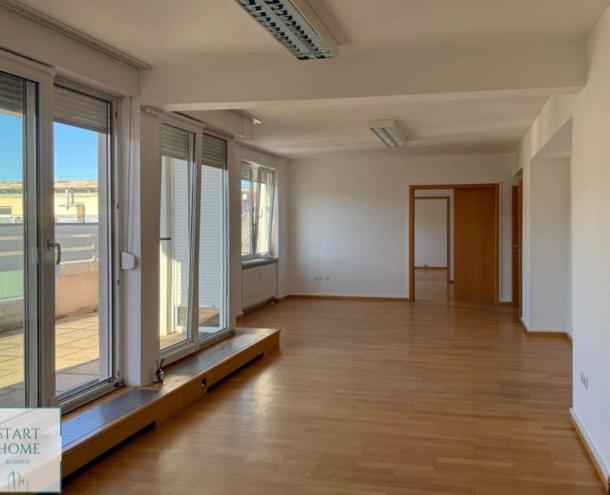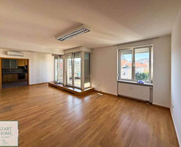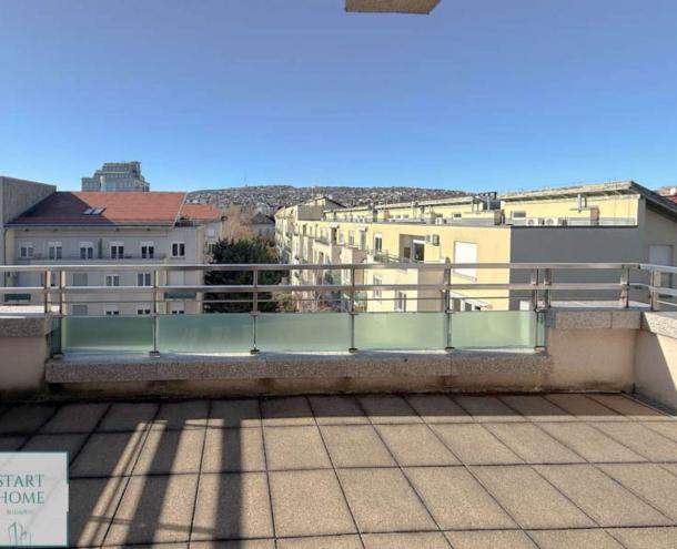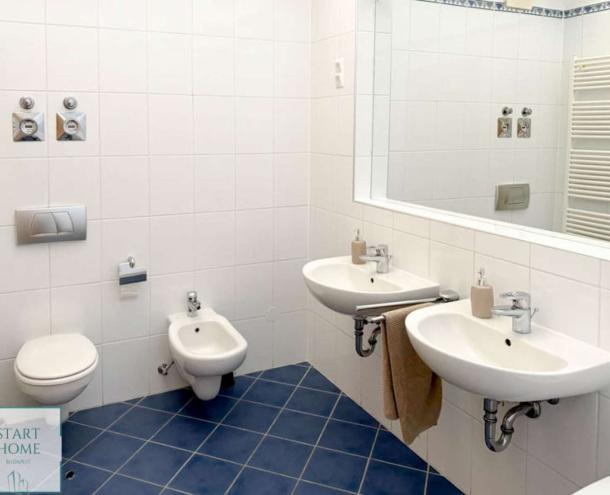 2001-ben épült társasház 5. emeletén, lift közvetlen bejárattal a lakásba. A 190 m²-es penthouse tágas terekkel rendelkezik: 38 m²-es nappali, 2 hall, 3 hálószoba, 2 gardróbszoba, 1 fürdőszoba, 2 zuhanyzó, valamint 3 terasz.