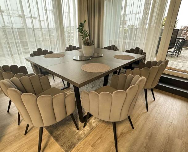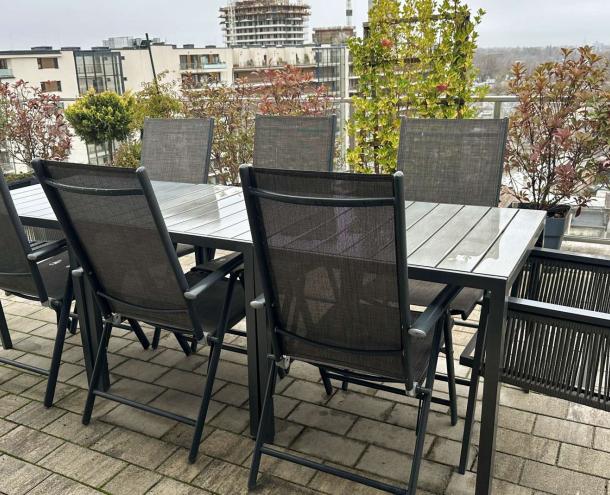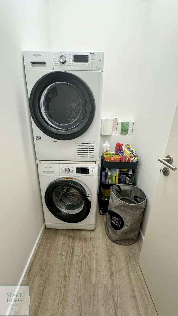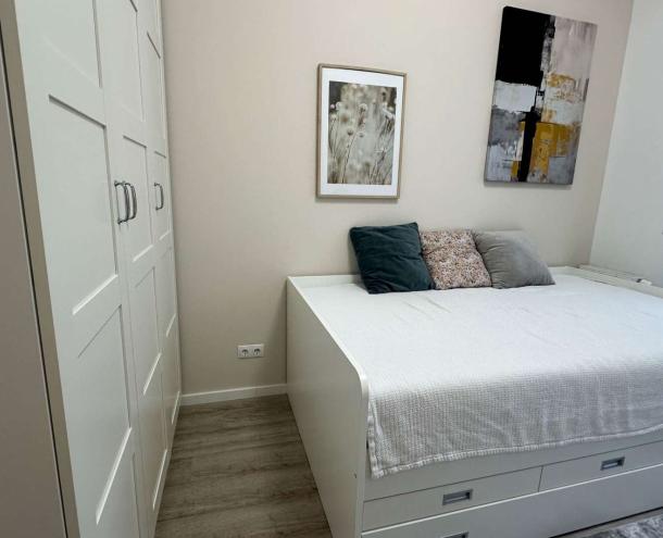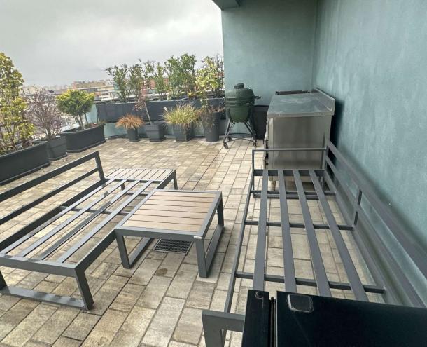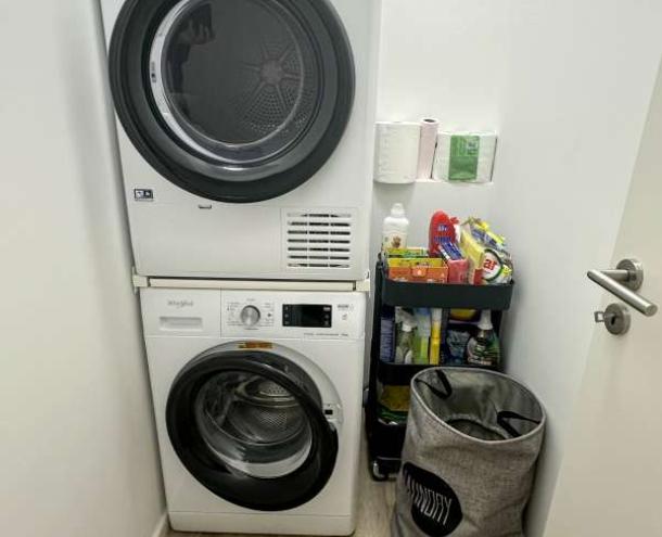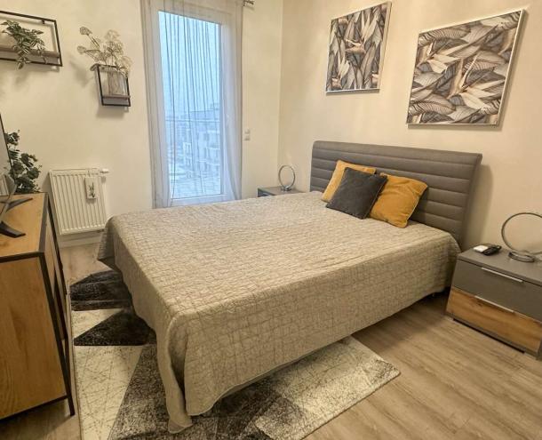 A lakás új egyedi beépített konyhabútorral rendelkezik. A lakás teljesen bútorozott és teljesen gépesített állapotban bérelhető.