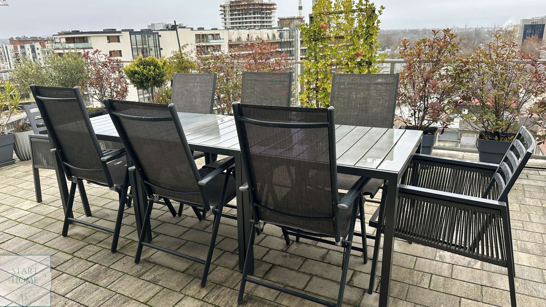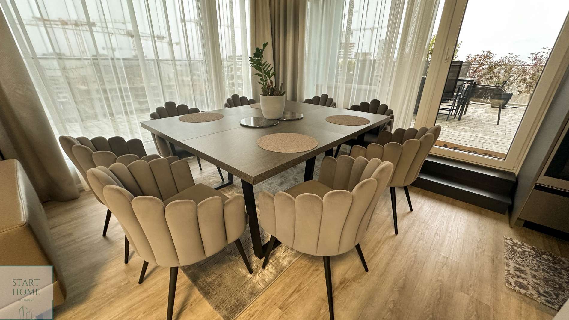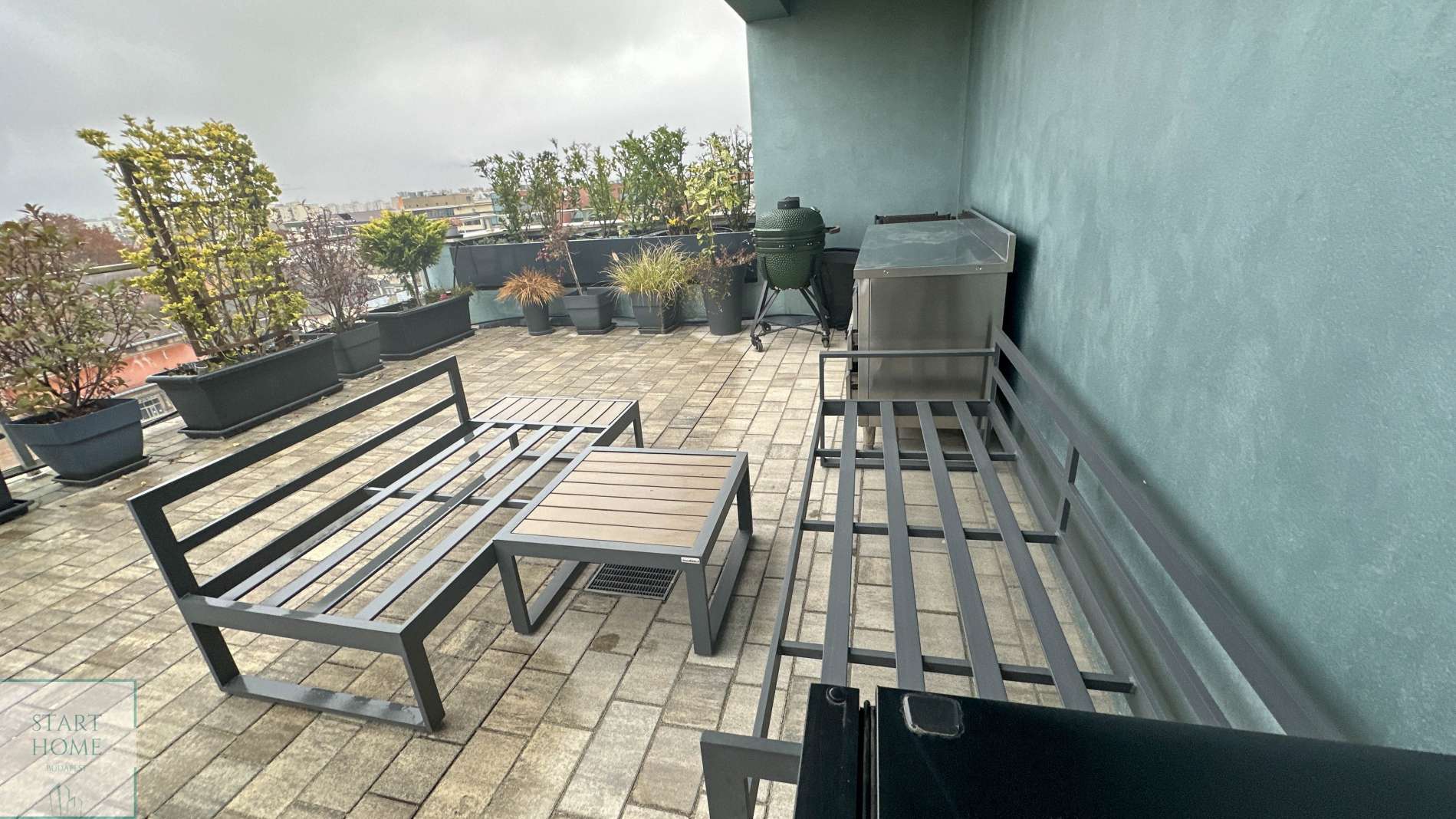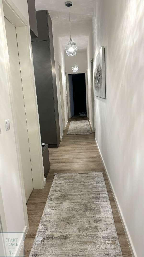 A lakás elrendezése: nappali amerikai konyhával, 4 hálószoba, 2 fürdőszoba (káddal és zuhanyzóval), 1 vendég WC +40 nm terasz.