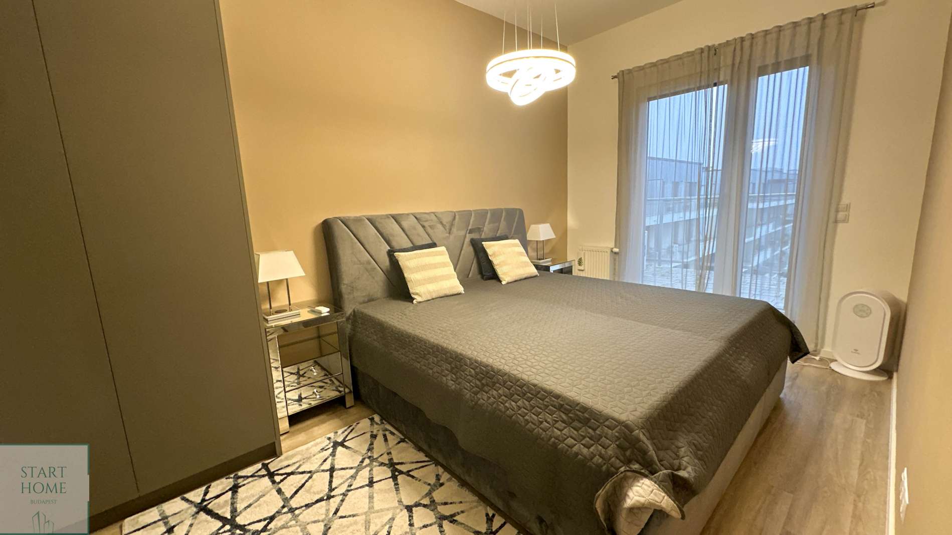 A lakás teljesen komfortos, hőszivattyús mennyezeti hűtés-fűtés (minden szobában egyedileg szabályozható) és okos otthonvezérléssel.