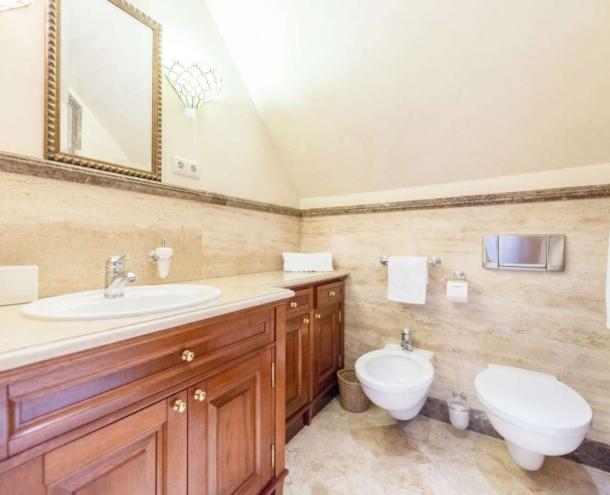 CSEND ÉS NYUGALOM! Erdő szomszédságában, ősfás parkban kiadó egy 250 nm-es, kétszintes lakás viktoriánus ihletésű (influence style), kortárs villában. Alsó szint: 60 nm nappali kandallóval és ebédlővel, 14 nm konyha kamrával, 18 nm hálószoba fürdőszobával és gardróbszobával, külön WC, könyvtárszoba. Tetőtér: 24 nm nappali, 3 hálószoba (12, 13 és 29 nm), 1 fürdőszoba, külön WC, 1 zuhanyozó WC-vel, gardrób. A lakáshoz összesen 116 nm terasz tartozik. 2 autónak garázs + beállók a kertben. A lakás bútor nélkül bérelhető (a képeken látható bútorok maradhatnak), a közös ktg.: 150.000 Ft/hó (víz, csatorna, gáz, áram, kert, közös részek takarítása). Kötelező takarítás: heti 25.000 Ft/hó. Háziállat nem mehet! Alaprajz! 2026. januártól költzöhető!
