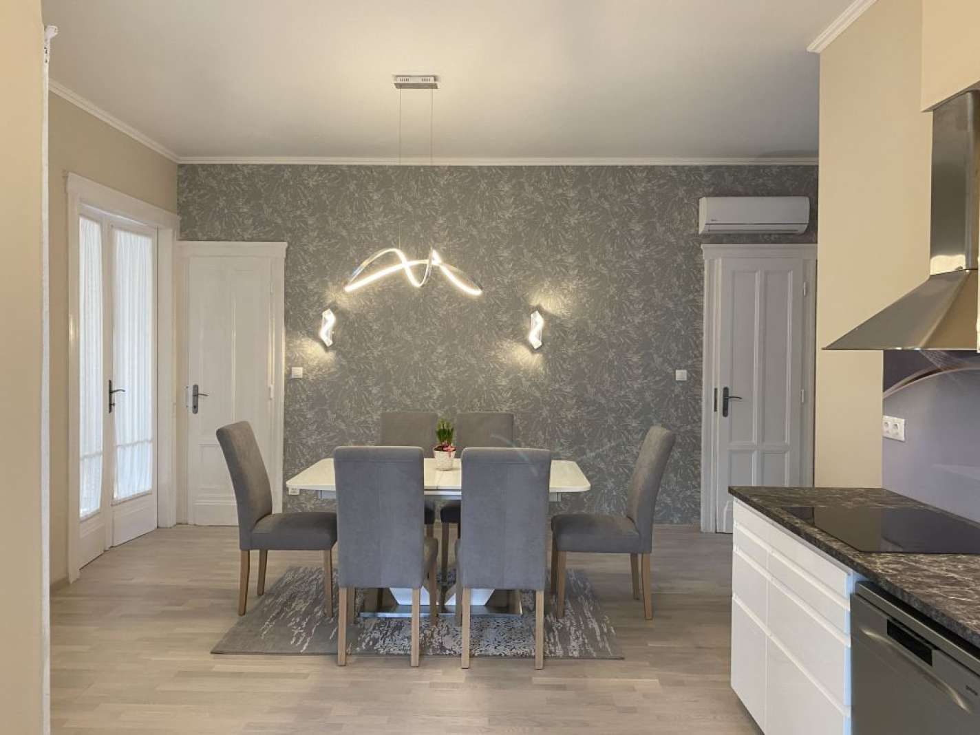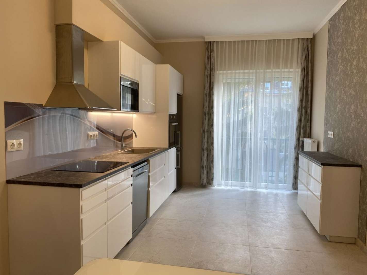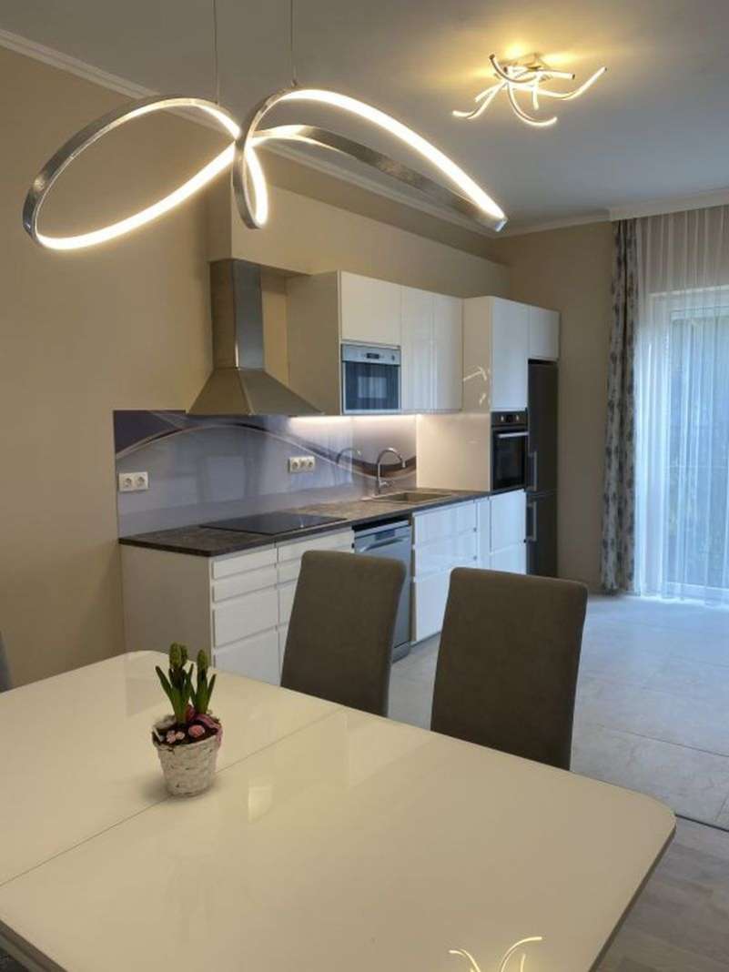 Extrák: elektr. redőnyök, légkondi, indukciós főzőlap, Gorenje háztartási gépek, leggyorsabb optikai Internet (11.000 Ft/hó), 3,3 m belmagasság.