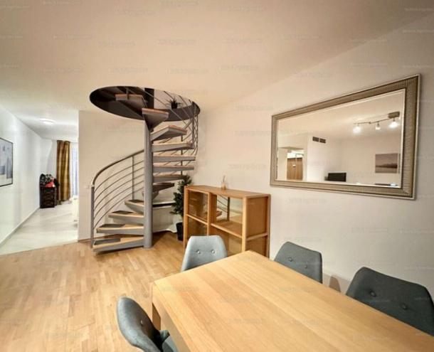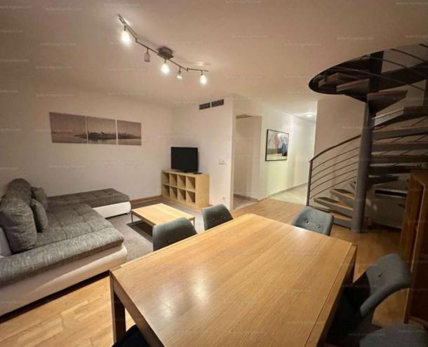 RITKA LEHETŐSÉG! GARÁZSOS, TERASZOS LAKÁS A BELVÁROSBAN! 2007-ben épült liftes társasház 5. emeleti, 2-szintes, 100 nm-es bútorozott lakása kiadó a Liszt Ferenc térnél. A belső kétszintes lakásban található egy nappali, amerikai konyha étkezővel, 3 hálószoba, 2 fürdőszoba. 12 nem-es terasz. A lakáshoz 2 garázshely tartozik az épület alatti mélygarázsban 80 EURO/garázs. 2026. január 1-től bérelhető!