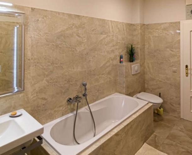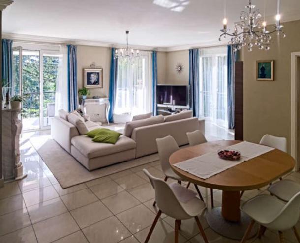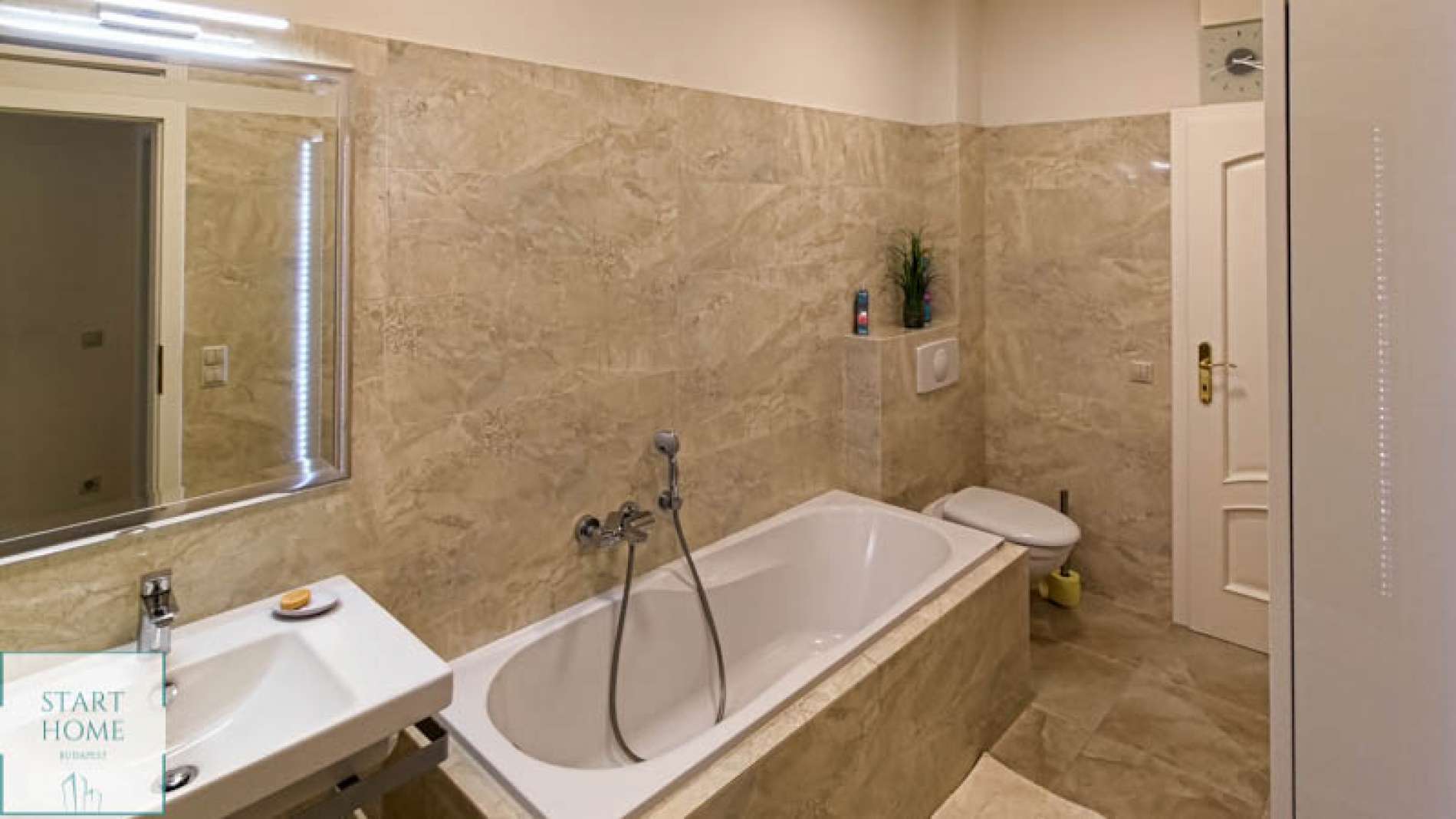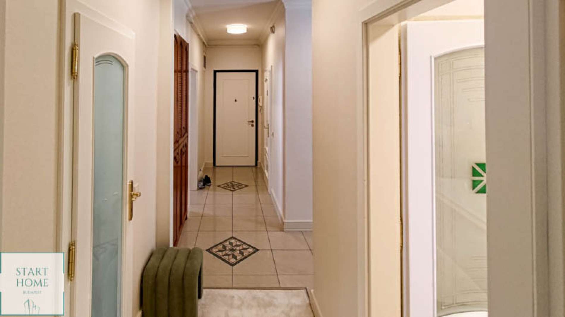 A lakás elosztása ideális: tágas nappali, 2 különálló hálószoba, 2 fürdőszoba (kádas és zuhanyzós), praktikus gardróbszoba, szeparált, teljesen felszerelt konyha.