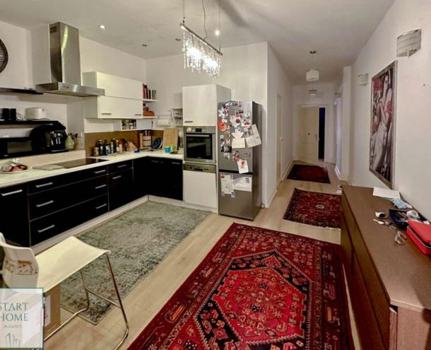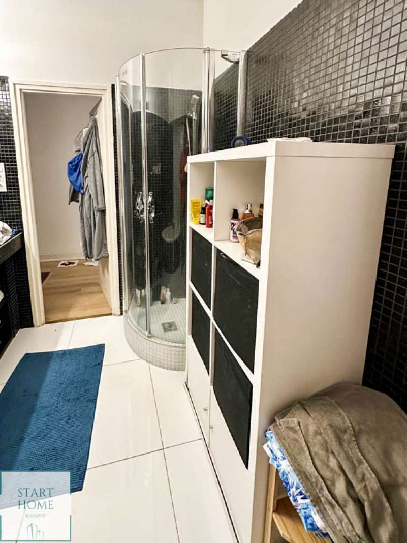 A lakás tágas nappalival, három külön nyíló hálószobával, külön gardróbszobával, valamint két fürdőszobával rendelkezik – az egyik káddal, a másik zuhanyzóval felszerelt. A gépesített, modern konyha minden igényt kielégít. Bútor nélkül bérelhető.