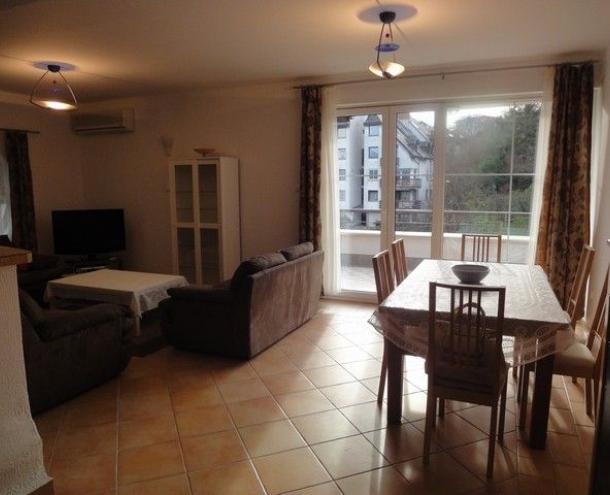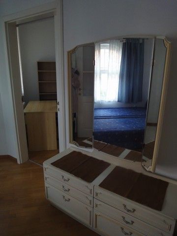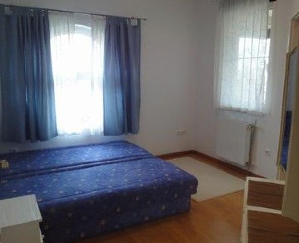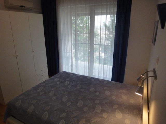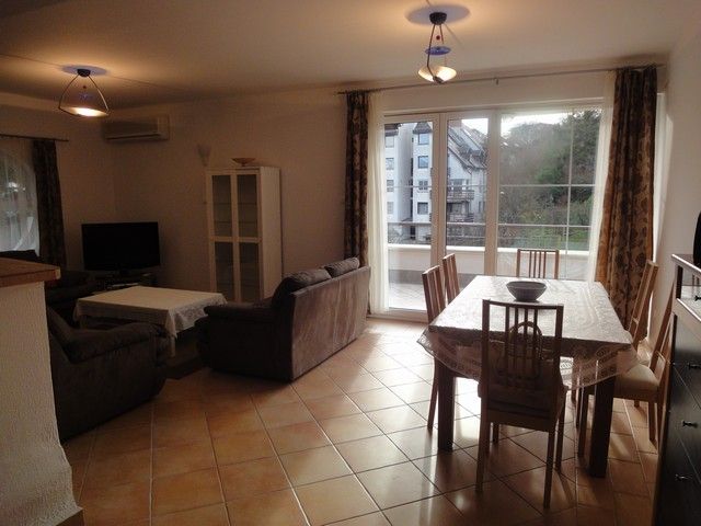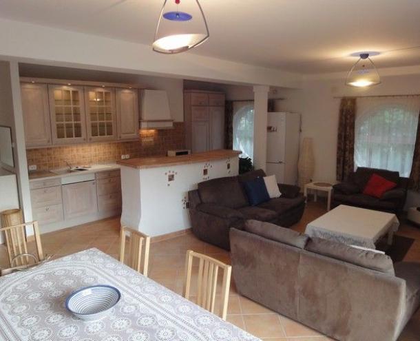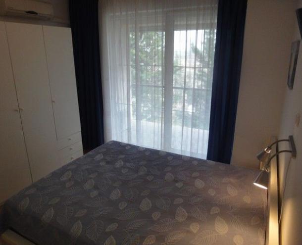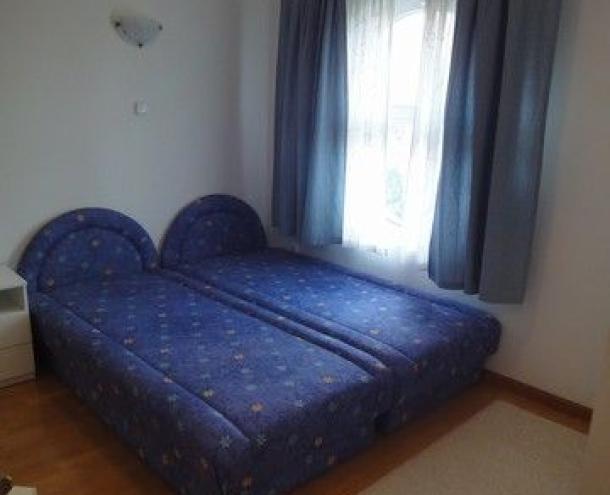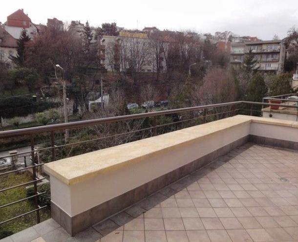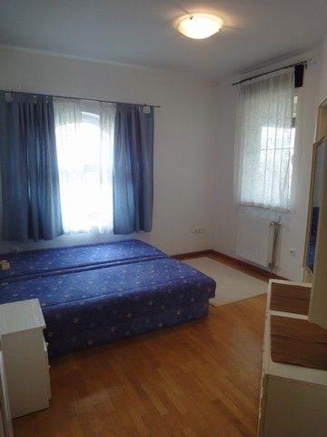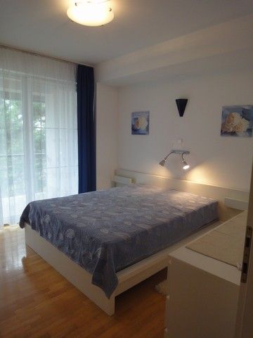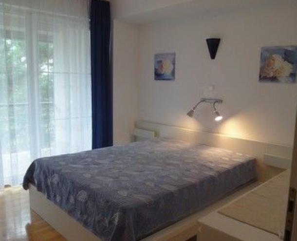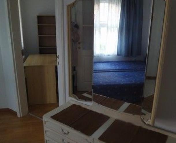 CSENDES LAKÁS KIADÓ! 2000-ben épült 8 lakásos társasház II. em-i (lift), bruttó 116 nm, nettó 104 nm-es lakása nagy, közös kertben kiadó. Helyiségei: 35 nm-es amerikai konyhás nappali, 1 nagyobb háló (két hálószobából lett kialakítva, de egyszerűen visszaállítható az eredeti állapot), 1 kisebb háló, gardróbszoba (2,6 nm), 1 nagy fürdőszoba WC-vel és bidével, 1 külön WC. A nappaliból és az egyik hálószobából jutunk ki az erkélyre. A lakás bútorozva bérelhető. Minden ablakon szúnyogháló található. A szobákban légkondi, a nappaliban padlófűtés, a hálókban parketta és kő burkolatok vannak. Biztonságról a riasztó és egy-két ablakon biztonsági rács gondoskodik. Az alagsorban 8 nm-es száraz tároló és egy gépkocsi részére beállóhely található. A rövid gépkocsi lejáró igény esetén fűthető.