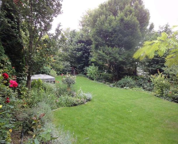TÖRÖKVÉSZEN CSENDES, PANORÁMÁS, LUXUS IKERHÁZ KIADÓ. A bruttó 300, nettó 250 nm-es ikerházat 2018-ban teljes körűen, minőségi anyagok felhasználásával felújították (konyha, fürdőszoba, burkolatok - Edelholz parketta -, vezetékek). Az ikerház 5 szintes. Az alsó szinten találjuk a szomszéddal közös, 2 autó beállására alkalmas garázst, a saját tárolót és és az AEG mosó- és szárítógépekkel felszerelt mosókonyhát. A következő szinten 2 hálószoba és mindkettőhöz tartozó fürdőszoba található, itt van a ház személyi bejárata is. A következő szinten a 95 nm-es nappali egység található, a konyha-étkező, nappali és a gyönyörű panorámás, 25 nm-es terasz, valamint egy vendég WC. A konyha különlegessége a beépített borhűtő. A következő szinten ismét 2 hálószoba kapott helyet, az egyik a szülői háló saját gardróbbal és kádas fürdőszobával és még egy hálószoba és egy fürdőszoba. A tetőtérben 2 kisebb szoba kapott helyet. Az 1200 nm-es közös kert gyönyörűen parkosított, karbantartott. Tömegközlekedés, Rózsadomb Center séta távolságra. A bútorozatlan ház 2026. júliustól költözhető.