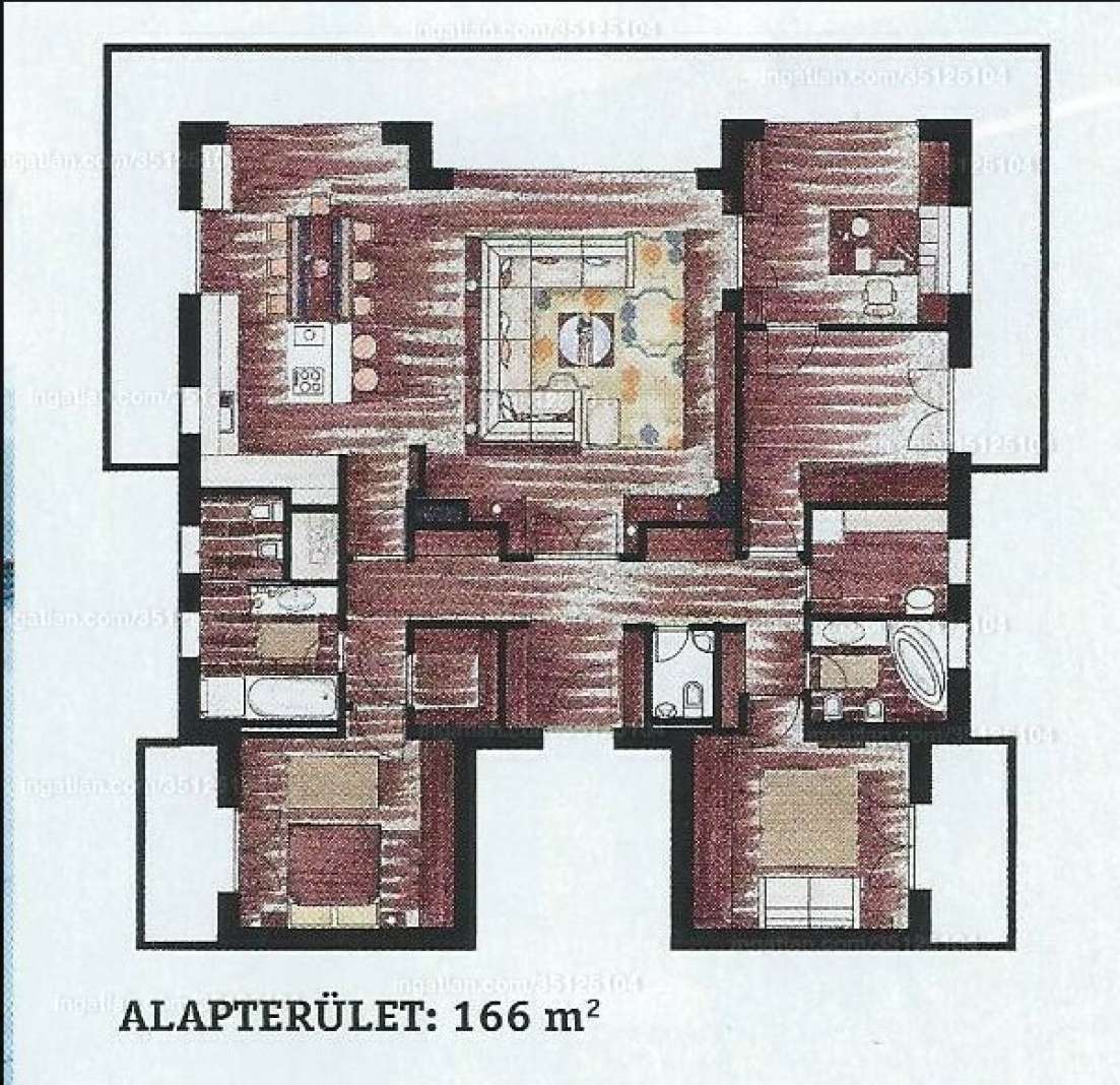 Elrendezés: amerikai konyhás nappali, 4 háló, 2 fürdő, külön WC, gardrób, háztartási helyiség, teraszok.