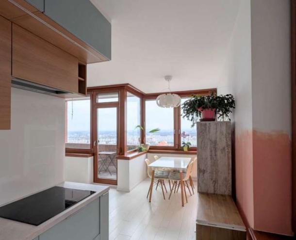 A nyugati fekvésű hálószobák erdei panorámát biztosítanak, míg a keleti erkélyről budapesti kilátás élvezhető; a nappali és a konyha délelőtt napfényes.