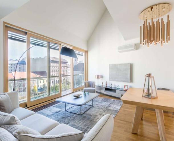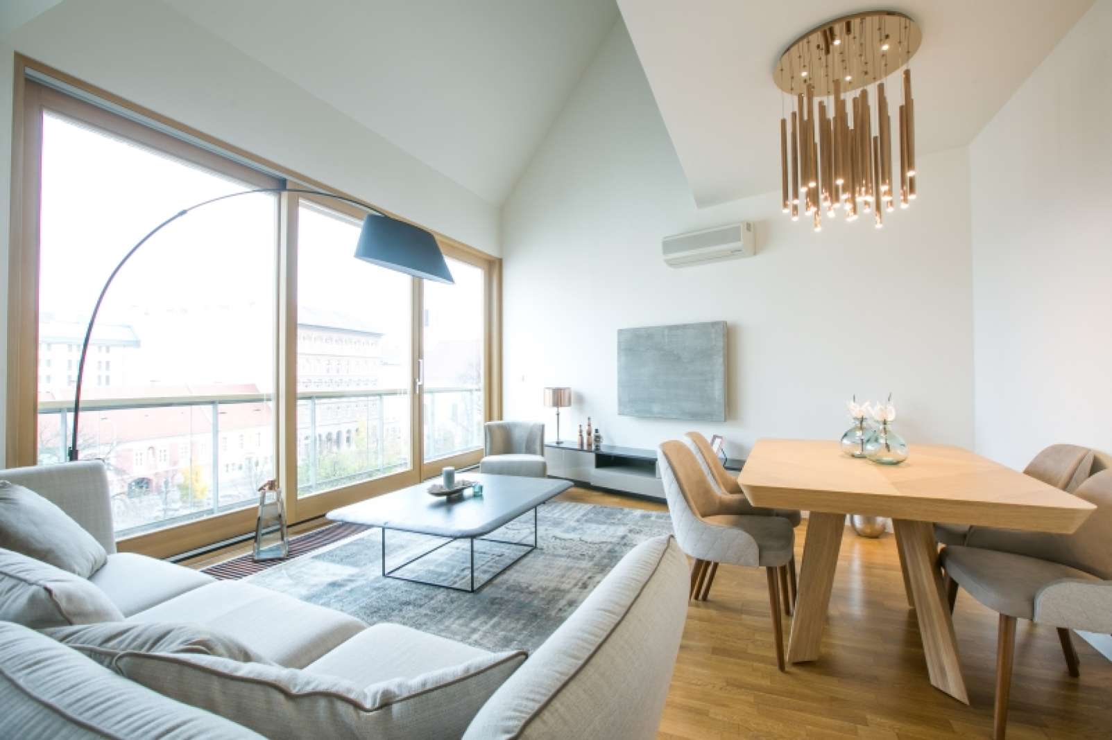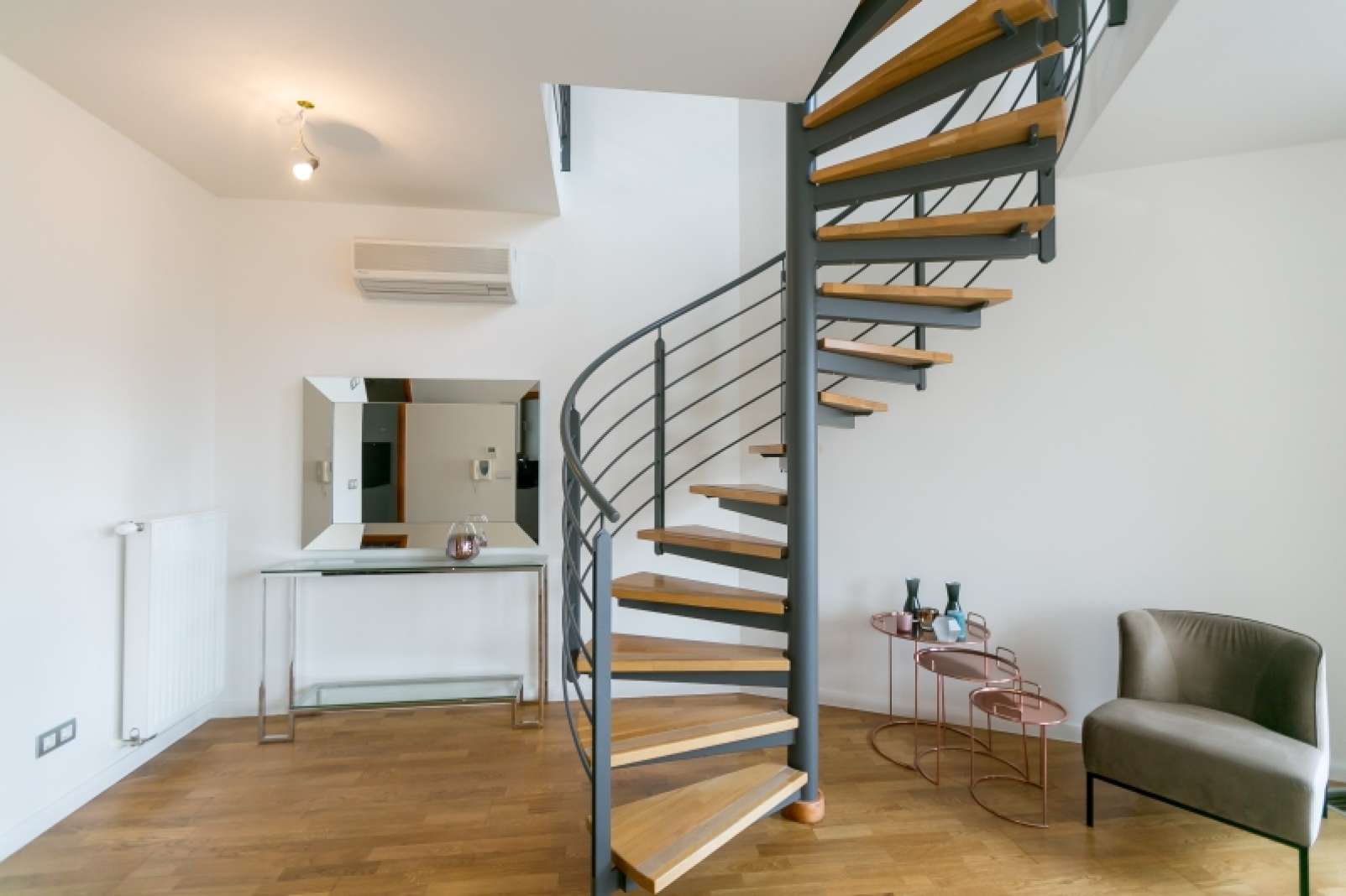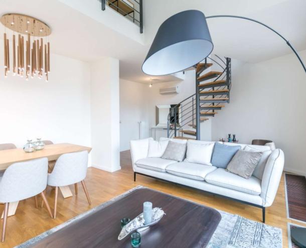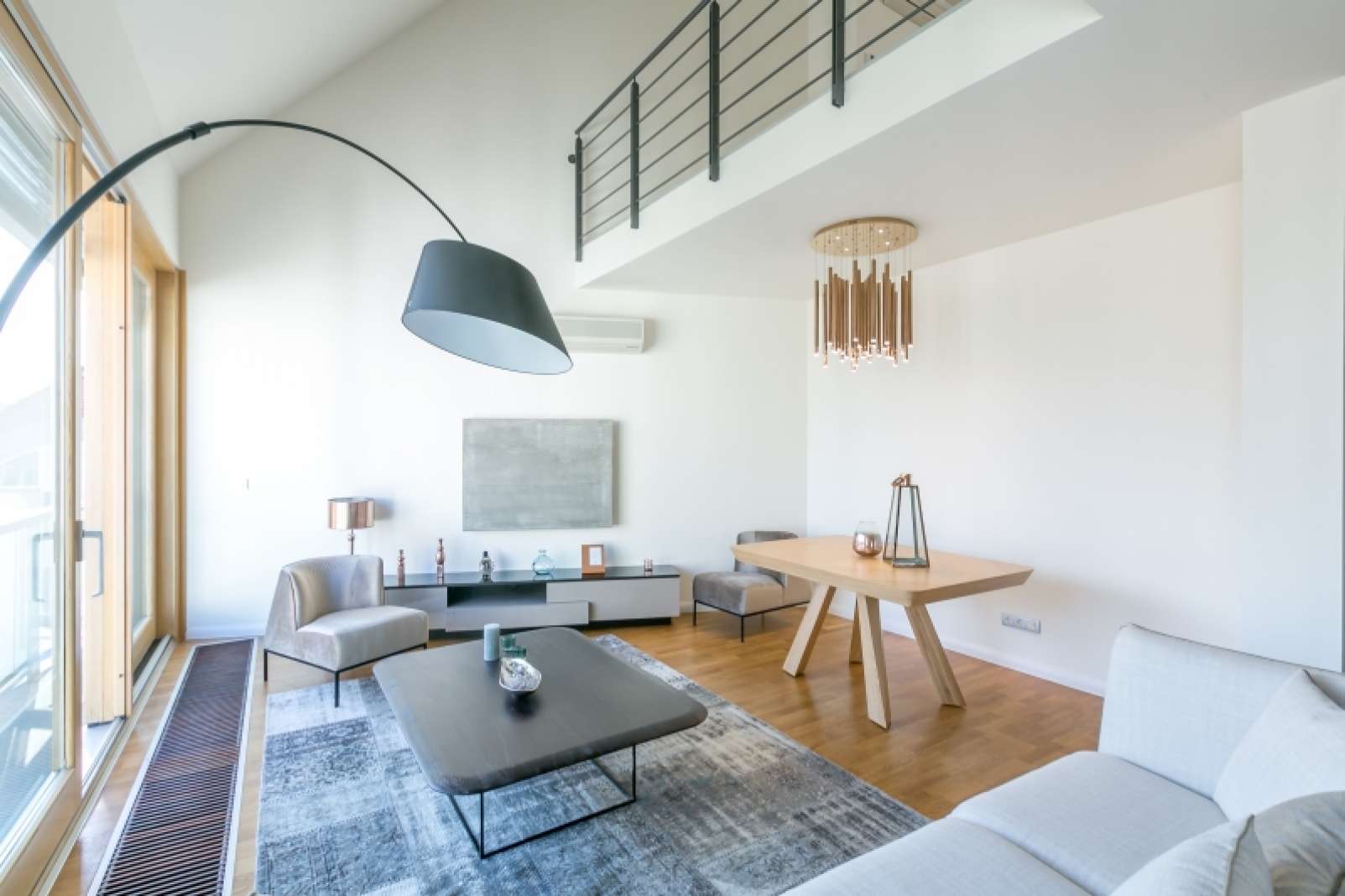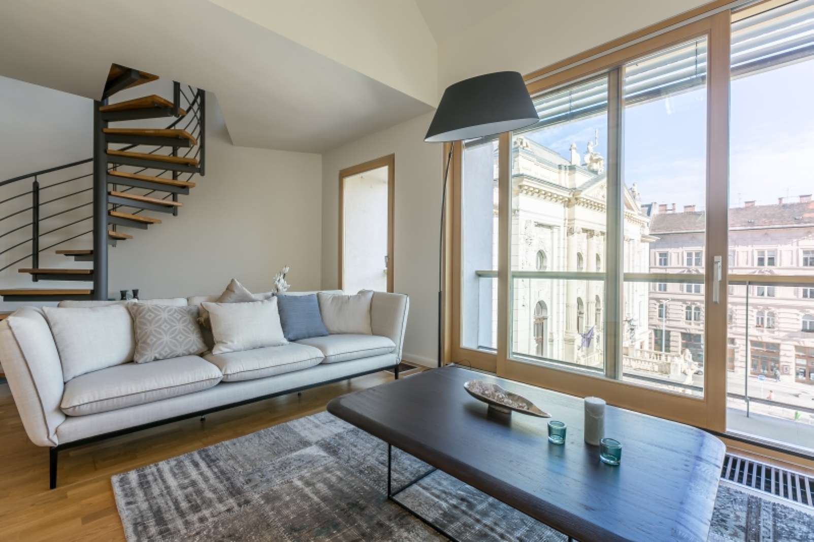 LUXUSLAKÁS A HALÁSZBÁSTYA ALATT! III. em-i (lift), 103 nm-es, kétszintes lakás kiadó új házban. Alsó szint: nappali, konyha, kamra, 1 hálószoba, 1 fürdőszoba. Felső szint: galéria, 1 fürdőszoba, 15 nm erkély. A lakás bútorral kiadó. Terem garázs hely 100 EUR + ÁFA/hely, tárolók 10 EUR/nm/hó + ÁFA áron bérelhetők. Közös ktg: 580 Ft/nm/hó (közös területek takarítása, világítása, szemét, riasztó távfelügyelet, közös területek kamerás megfigyelése, 24 órás őrszolgálat). Bérleti díj: 2300 EURO + ÁFA.