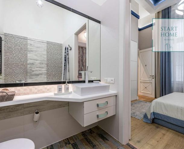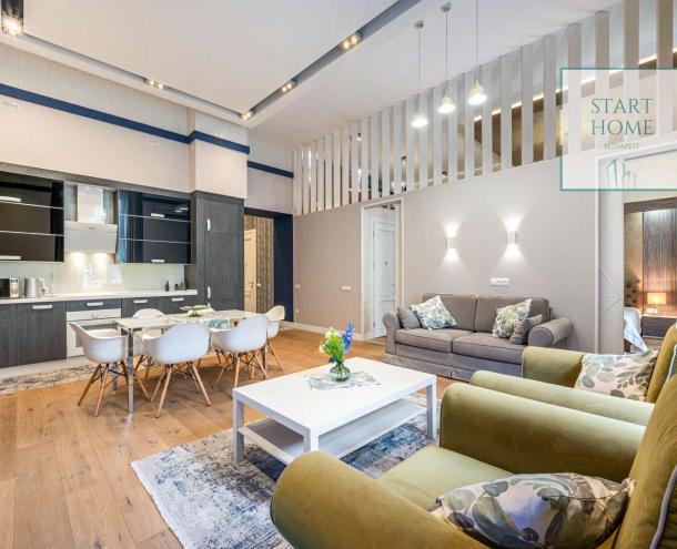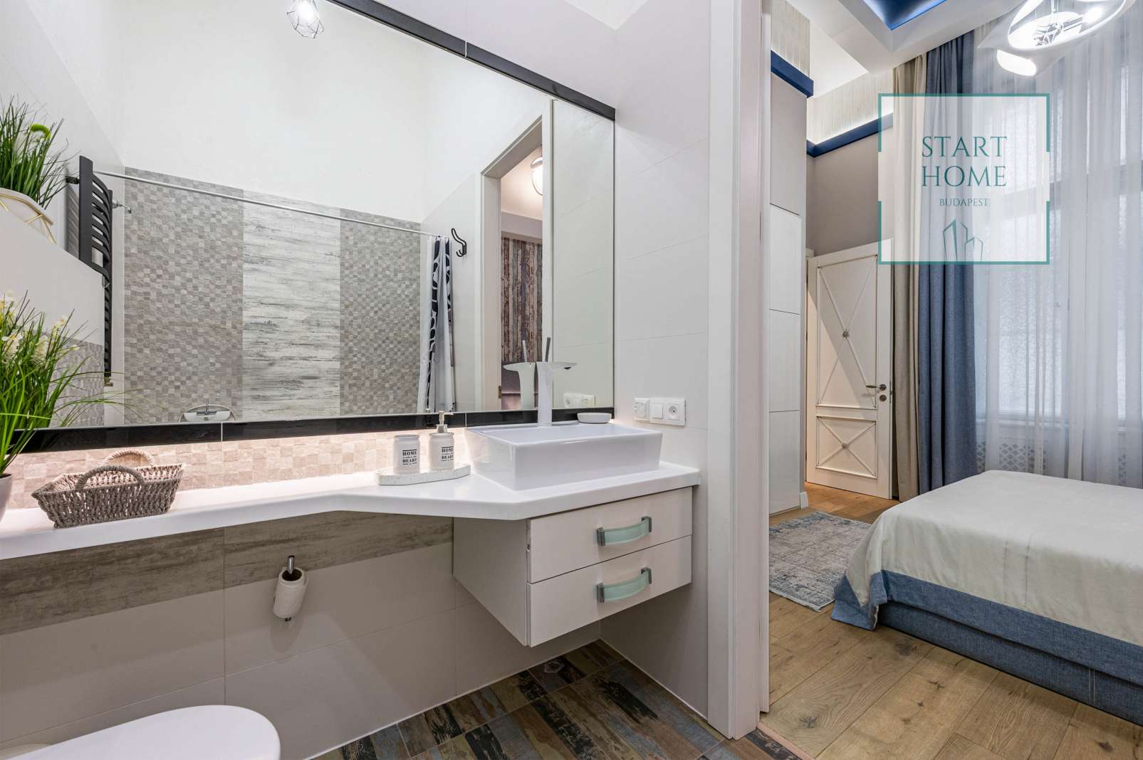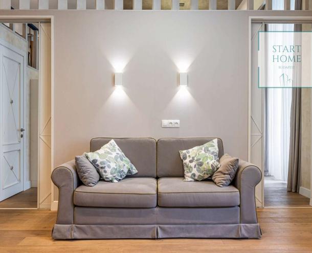 A 2. emeleti (lift) lakás belső elrendezése gondosan megtervezett és átgondolt: két hálószoba, tágas étkezős amerikai konyha, mely teljes körűen gépesített, egy lenyűgöző nappali, 2 fürdőszoba. és külön WC
