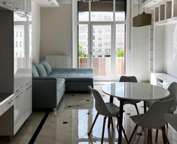 Budapest belvárosának szívében, a híres Vörösmarty téren található ez a frissen felújított, 48 m²-es lakás, amely a modern kényelmet és a történelmi környezet hangulatát ötvözi.