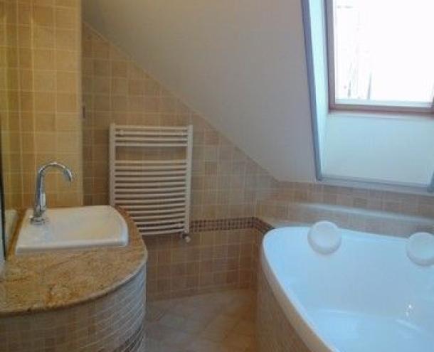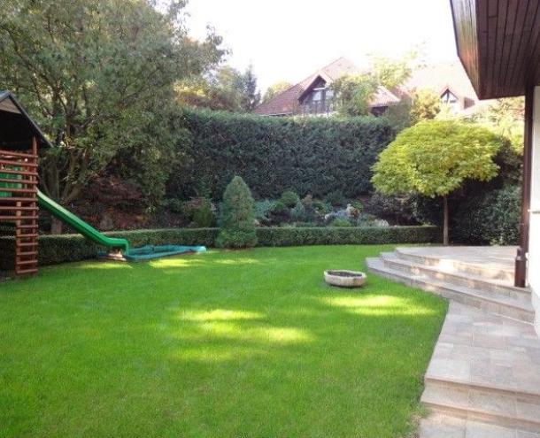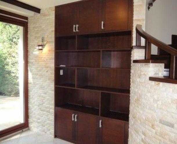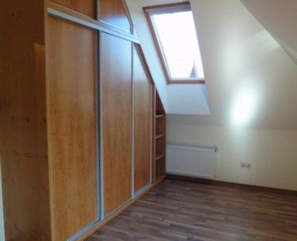 SZÉLSŐ SORHÁZI LAKÁS KIADÓ EGY KELLEMES GYERMEKBARÁT KERTTEL. Kiadó ez a 2005-ben gyönyörűen felújított, 150 nm-es, lakóparki sorházi lakás, saját kerttel. A lakás 3 lakószintes a következő elrendezéssel. A kertszinten a tágas nappalit találjuk a minőségi konyhával (beépített hűtő, gáztűzhely, mosogatógép, gránit munkalap) és kertkapcsolatos, 25 nm-es terasszal. A nappaliban a téli hidegek kompenzálására egy elektromos kandallót építettek be. Egyedi surround rendszer, a mennyezetről lenyíló vetítő vászon gondoskodik a családi szórakozásról. Ezen szinten van még egy vendég szoba saját fürdőszobával. A lakásnak teljesen szeparált, saját cirkó fűtése van, a nappaliban és a vendégszobában a kőburkolatok alatt padlófűtéssel és a parkettával burkolt hálószobákban radiátor fűtéssel. Az emeleten 4 kis méretű hálószoba kapott helyett egy kádas fürdőszobával és a külön WC-vel. A tetőtérben a gyerekeknek alakítottak ki játszószobát és itt találunk egy gardrób szobát is. Az alagsorban 1 autó számára van hely, valamint egy mosókonyha, kazánház és tároló kapott helyet.